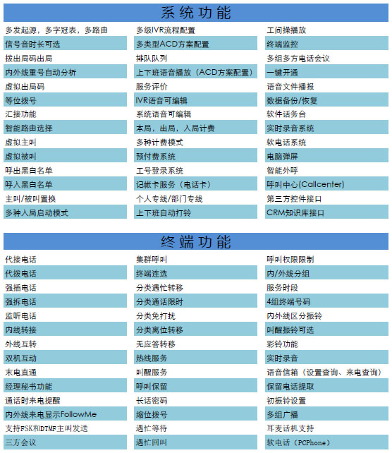 可按客戶需要配置多種管理軟件(參數(shù)設(shè)置、計費系統(tǒng)、錄音系統(tǒng)、軟電話、callcenter等),其功能強大,界面友好??蓪崿F(xiàn)各類參數(shù)設(shè)置、狀態(tài)實時監(jiān)控以及各種功能的實現(xiàn),是保障和維護系統(tǒng)正常運行的強力支持。