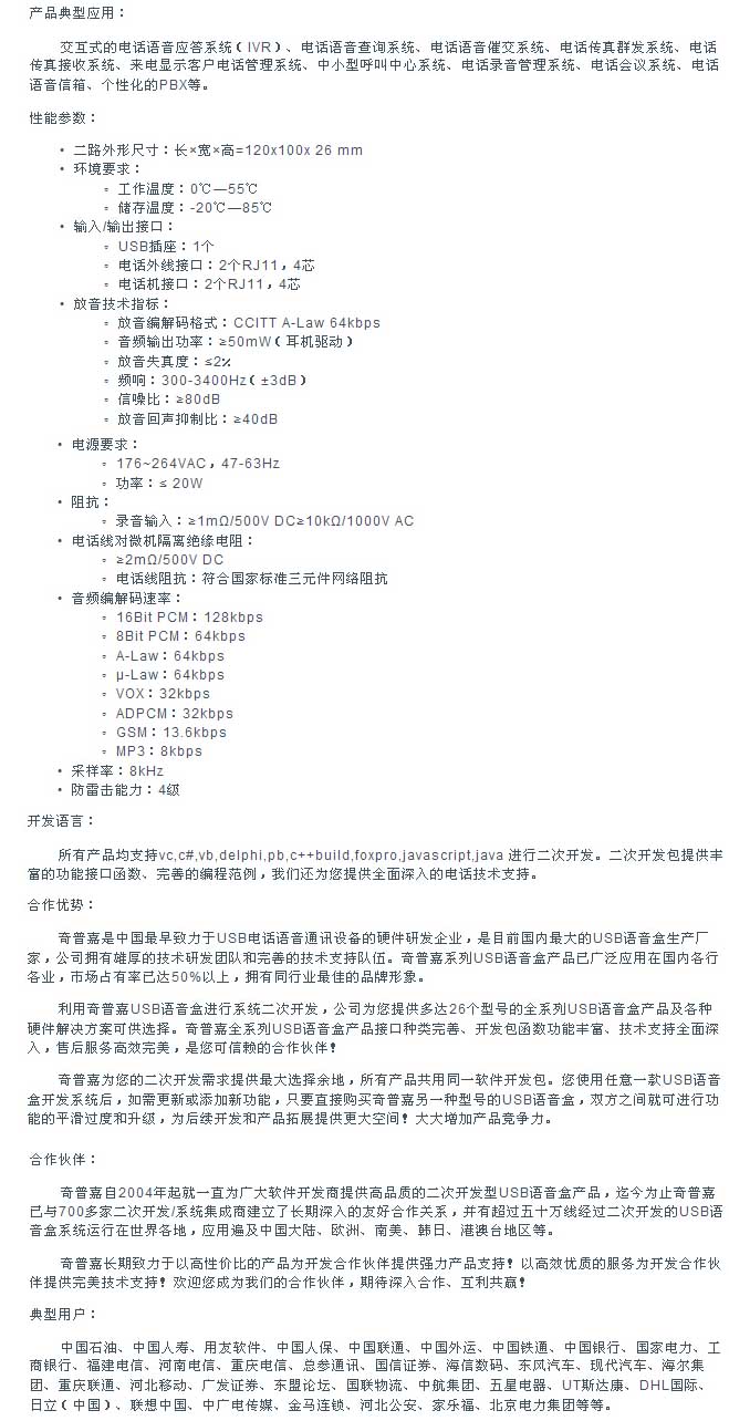 您現(xiàn)在的位置:首頁 >> 電話錄音>錄音盒>奇普嘉>USB電話語音盒>二路USB電話語音盒>