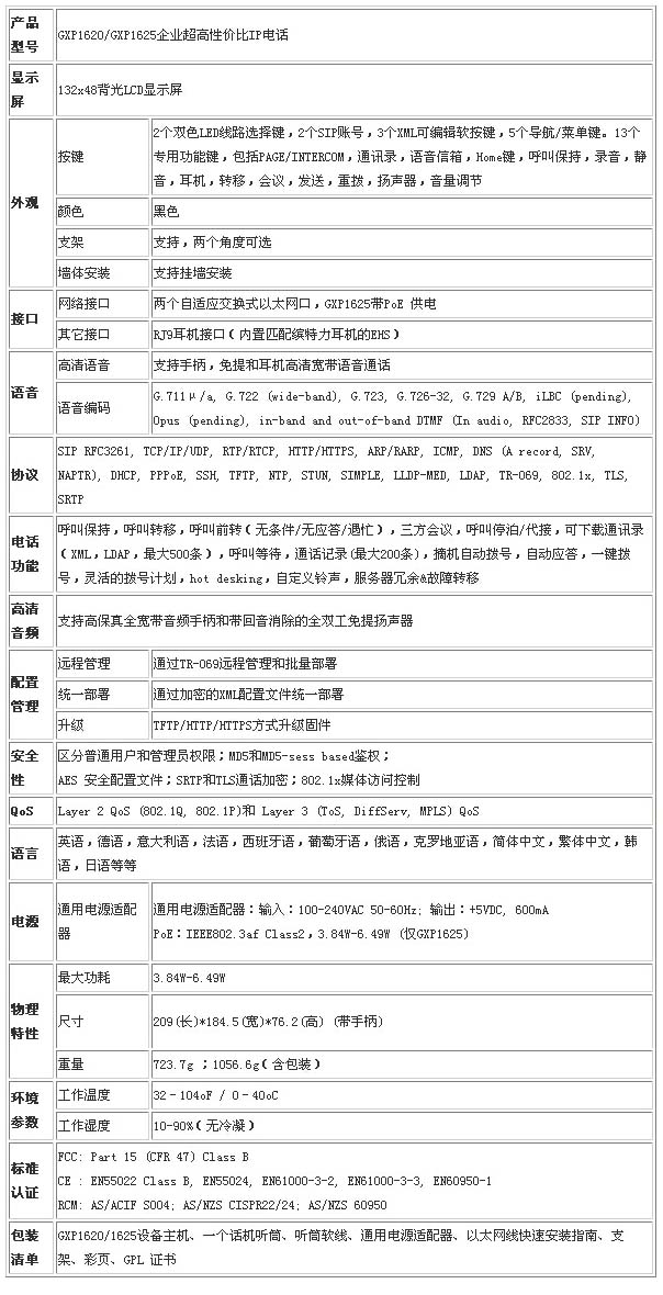 GXP1620/1625是一款功能豐富、簡單易用的基礎(chǔ)級IP電話,適用于中小型企業(yè)和SOHO辦公通信。這款基于Linux平臺的話機支持2個SIP賬號,2條通話線路,3個可自定義功能的軟按鍵,高清語音和3方會議。132x48像素背光LCD顯示屏可以清晰明了的顯示關(guān)鍵信息。GXP1620/1625都支持兩個10/100M交換式網(wǎng)口,其中GXP1625支持PoE。還支持多種語言顯示,匹配繽特力耳機的EHS無線耳機適配器,呼叫等待等豐富的附加功能。GXP1620/1625擁有超高的產(chǎn)品質(zhì)量和友好的交互方式,是最值得信賴的辦公電話。