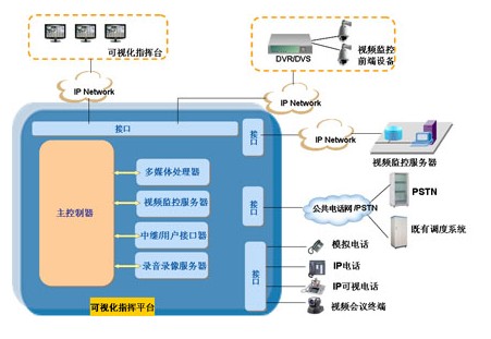 MDS6800可視化指揮調(diào)度系統(tǒng)簡介 “指揮官”MDS6800可視化指揮調(diào)度系統(tǒng)是一套基于IP網(wǎng)絡(luò),集視頻指揮調(diào)度、視頻會(huì)議、遠(yuǎn)程監(jiān)控功能于一體的綜合視頻通信系統(tǒng)。完全遵循下一代網(wǎng)絡(luò)(NGN)的分層、全開放的軟交換體系架構(gòu),實(shí)現(xiàn)業(yè)務(wù)控制與業(yè)務(wù)承載相互分離,在各種網(wǎng)絡(luò)條件和傳輸帶寬條件下,可提供優(yōu)質(zhì)的雙向語音和清晰的實(shí)時(shí)動(dòng)態(tài)圖像,成功的將語音通信、數(shù)據(jù)通信和視頻通信相結(jié)合,構(gòu)建一個(gè)聲影并茂的調(diào)度指揮網(wǎng)絡(luò),不僅為調(diào)度中心領(lǐng)導(dǎo)配備了“順風(fēng)耳”,還配備了“千里眼”,信息獲取更直接,下達(dá)調(diào)度指令更有效。該系統(tǒng)可以廣泛用于石油、石化、煤炭、礦山、冶金、軍隊(duì)、武警、公安、政府、電力、鐵路、地鐵等領(lǐng)域。 系統(tǒng)構(gòu)成 MDS6800由核心主控制器、多媒體處理器模塊、視頻監(jiān)控模塊、錄音/像管理模塊、中繼/用戶接口模塊、網(wǎng)管系統(tǒng)以及各種形式的終端組成,終端類型包括可視化指揮臺(tái)、監(jiān)控終端、模擬電話及IP電話。