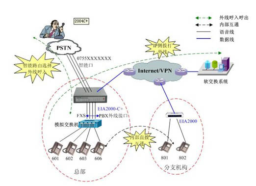產(chǎn)品概述 終端EIA2004C+接入設(shè)備、提供4個(gè)Link口接PSNT線路, 4個(gè)FXS接普通話機(jī), 可享受VOIP的低廉的資費(fèi), 優(yōu)質(zhì)語音,支持?jǐn)嗑W(wǎng)斷電不影響正常通話業(yè)務(wù), 通過PSTN出局自動(dòng)增加" IP "接入號(hào), 同時(shí)提供1個(gè)WAN口,1個(gè)LAN口,允許企業(yè)、辦公室或家庭中多臺(tái)PC共享1條ADSL線路、一個(gè)Internet ISP賬戶上網(wǎng),內(nèi)置的1個(gè)交換端口方便您上網(wǎng)服務(wù)。 EIA2004C+提供多方面的管理功能, 可對(duì)DHCP服務(wù)器、DMZ主機(jī)、靜態(tài)路由表、DNS、Tunnel( 隧道)端口映射等進(jìn)行管理, 同時(shí)提供全中文Web配置界面,用戶界面友好, 配置簡(jiǎn)單易用, 支持軟件升級(jí), 是一款能讓您同時(shí)體驗(yàn)語音和上網(wǎng)沖浪的首選產(chǎn)品。 產(chǎn)品特點(diǎn) ? 支持T.38實(shí)時(shí)傳真,可以連續(xù)傳多頁紙,傳真清晰度高。 ? 支持主叫號(hào)碼、拍叉(用#代替)、呼叫轉(zhuǎn)移、熱線電話、FXS端口權(quán)限等多種實(shí)用的電話業(yè)務(wù)。 ? 話音質(zhì)量好,可以與普通PSTN話音相媲美.支持標(biāo)準(zhǔn)編碼如G.711、G.729A、G.723.1支持動(dòng)態(tài)抖動(dòng)緩 沖管理、回波抵消包補(bǔ)償技術(shù)、語音激活檢測(cè)技術(shù)VAD和舒適背景音生成(CNG)。 ? 支持802.1q和802.1p, 可以設(shè)置語音數(shù)據(jù)流的業(yè)務(wù)優(yōu)先級(jí)和VLAN標(biāo)簽, 大幅提高業(yè)務(wù)的保護(hù)能力。 ? 內(nèi)置智能語音評(píng)判專家,在網(wǎng)絡(luò)狀況變差導(dǎo)致VoIP語音質(zhì)量下降時(shí),能自動(dòng)把呼叫路由到企業(yè)原PSTN 線路。 ? 撥號(hào)規(guī)則簡(jiǎn)單靈活,與企業(yè)原有的傳統(tǒng)PBX電話互通性好,完全繼承傳統(tǒng)電話使用習(xí)慣。 ? 支持對(duì)VoIP與PSTN的呼叫比率進(jìn)行控制,平衡VoIP運(yùn)營商與企業(yè)原PSTN運(yùn)營商之間的利益沖突。 ? 可以自動(dòng)對(duì)長途呼叫添加類似17909的IP接入號(hào)。 ? 支持PPP/PPPOE,DHCP Client, PPPoE中斷后能自動(dòng)重?fù)堋?/FONT> ? 提供WEB圖形配置界面, 對(duì)設(shè)備進(jìn)行本地配置, 操作管理、配置方法都非常簡(jiǎn)單。 ? 通過串口或Telnet方式, 可以對(duì)設(shè)備進(jìn)行本地或遠(yuǎn)程監(jiān)控、診斷。 ? 支持軟件自動(dòng)升級(jí)功能. EIA設(shè)備升級(jí)軟件時(shí), 不影響用戶的正常業(yè)務(wù)。 產(chǎn)品規(guī)格 尺寸(長×寬×高,單位:mm) | 222×215×36 | 重量(單位:kg) | 1.2 | 工作溫度(單位:℃) | 0~40 | 存儲(chǔ)溫度(單位:℃) | -20~70 | 工作濕度 | 10%~90% | 功率(單位:W) | 10 | 外置電源適配器 | 支持 | 電源輸入 | 220VAC/50Hz/0.5A | 外置電源輸出 | 12VDC/1.0A | 逃生FXO端口數(shù)目 | 4 | 產(chǎn)品規(guī)格 | 4S | 傳真支持 | 支持 | FXS反極信號(hào)發(fā)送 | 支持 | 斷電逃生 | 支持 | 電話接口雷擊保護(hù) | 10/700,4000V | 網(wǎng)絡(luò)接口 | 10/100BASE-TX | WAN口數(shù)目 | 1 | LAN口數(shù)目 | 1 |
